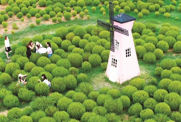 9月7日,在武汉山山森林公园(Wuhan Ma'anshan Forest Park),有40,000多种土壤草药上覆盖着“绿色衣服”,这吸引了公民和游客来登机并玩耍。可以预期,从9月底到10月初,土壤的草皮将逐渐变化,从绿色到热黄色和橙色,就像弯曲的调色板一样。 Xue Ting的照片,Chutian Metropolis Reporter Day -Day