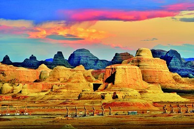 新疆卡拉梅城,乌尔地区世界魔鬼城的“库赫德机器”森林。 Karamay市政党委员会部门提供的图片